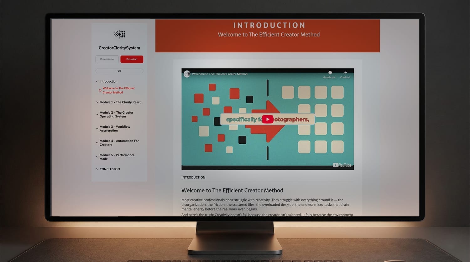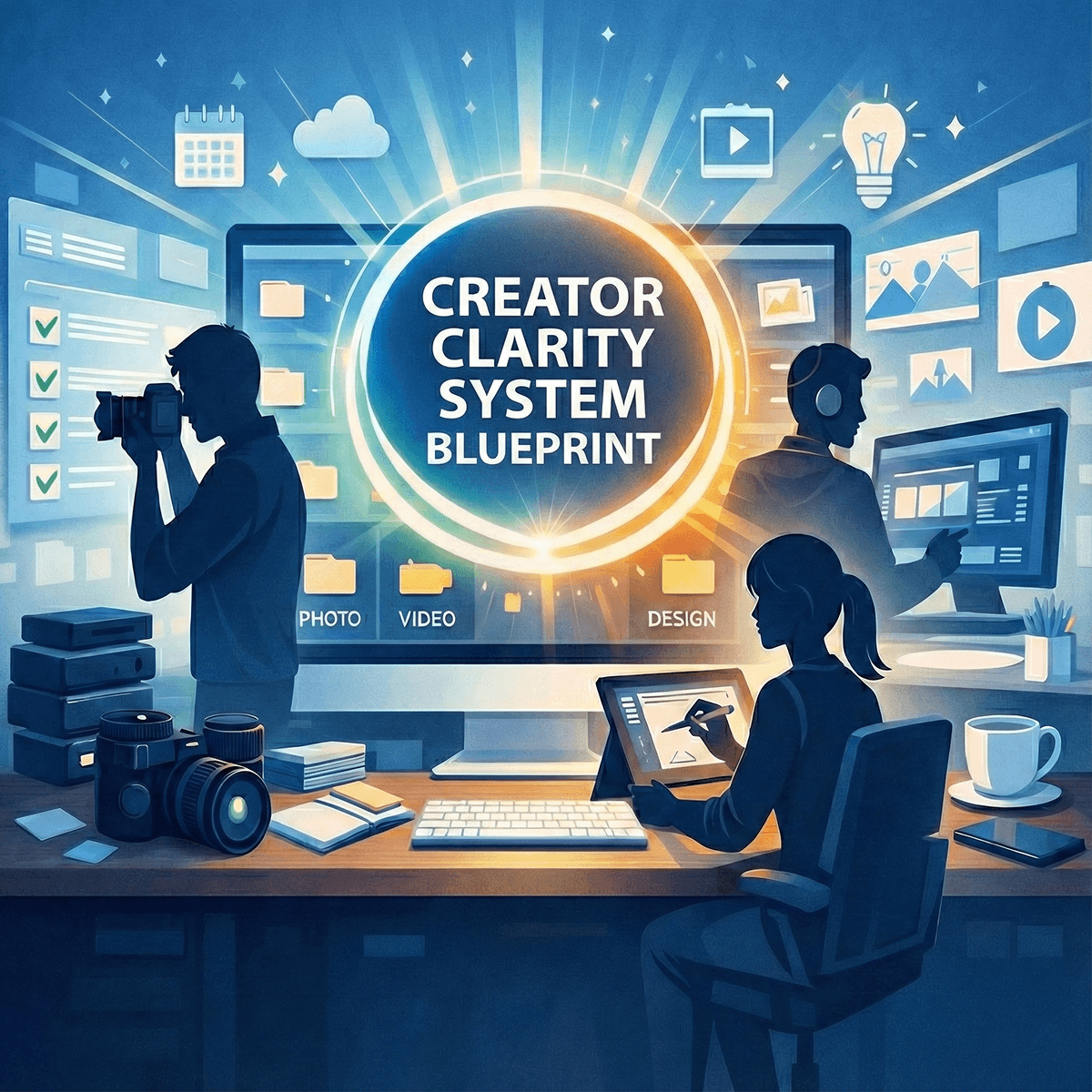 The Creator Clarity System Blueprint is a practical system built specifically for creative workflows — where large files, multiple versions, exports, clients, and constant context switching are part of daily work.